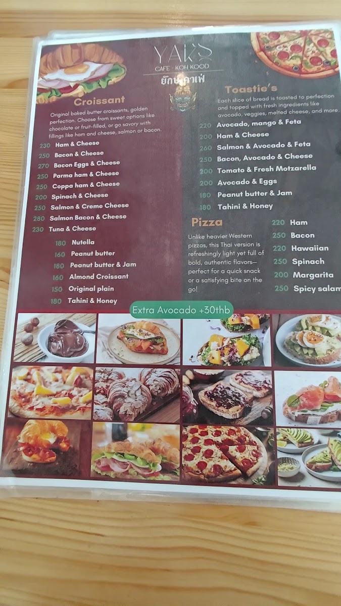 Yak's Cafe Koh Kood Menu